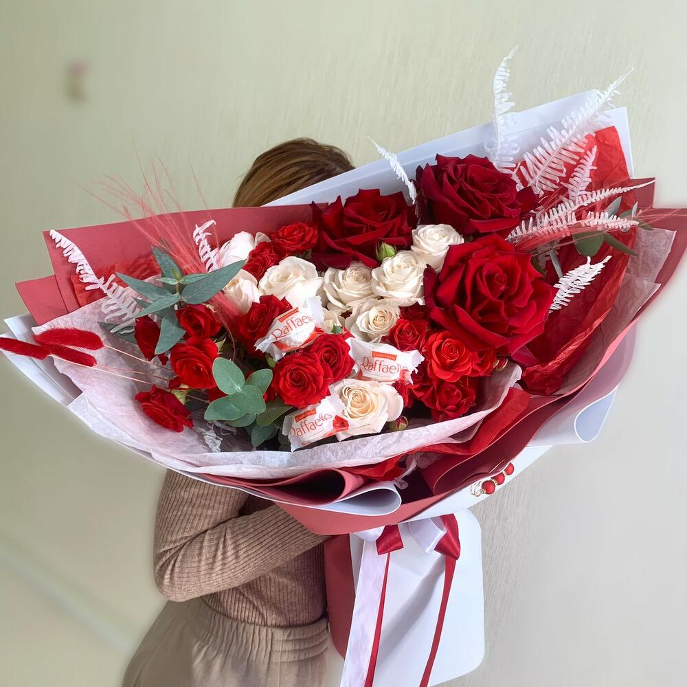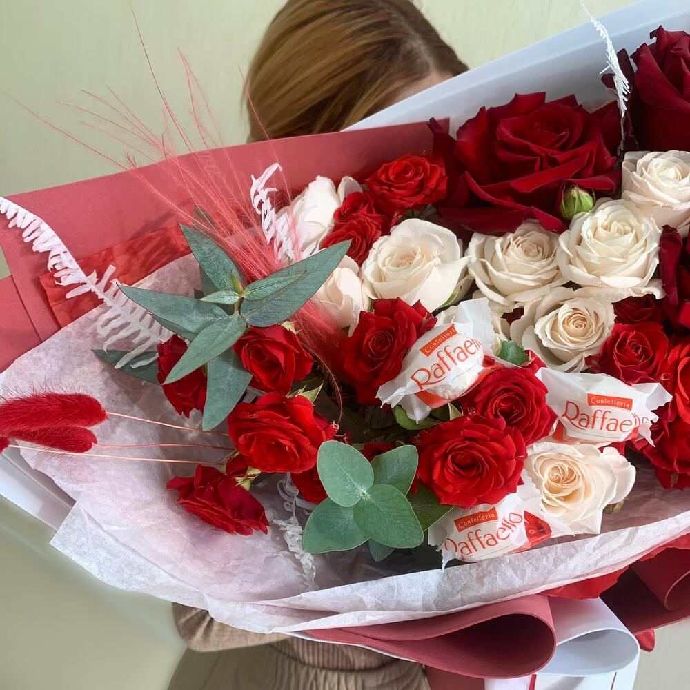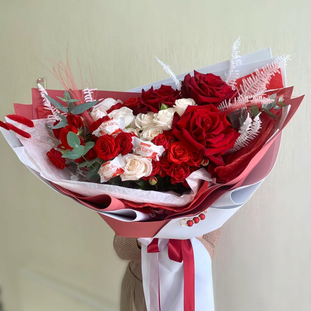 Букет идеально подойдет для того, чтобы порадовать свою вторую половинку и показать ей сладкую любовь.